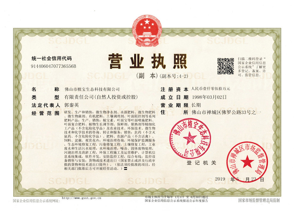 佛山市植寶生態(tài)科技有限公司成立于1985年3月,是一家集研發(fā)、生產(chǎn)、銷(xiāo)售葉面肥、有機(jī)水溶肥料、特種肥料、微生物菌劑、土壤調(diào)理劑及現(xiàn)代農(nóng)業(yè)綜合服務(wù)于一體的高新技術(shù)企業(yè)、農(nóng)業(yè)龍頭企業(yè),佛山市“專(zhuān)精特新企業(yè)”、是廣東省研究生聯(lián)合培養(yǎng)基地示范單位,是中國(guó)葉面肥元老級(jí)生產(chǎn)企業(yè)。